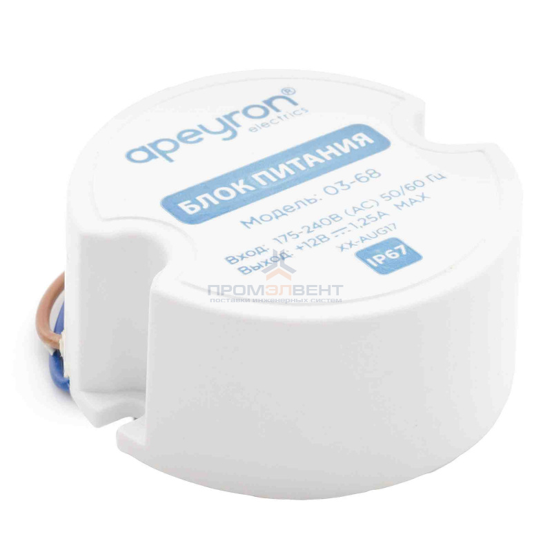 03-68 Блок питания 12 В, 15 Вт, IP67, 1,25А, пластик, 49*49 мм – поставка оптом и в розницу от компании «ПромЭлВент». Цены от производителя: доставка по Сызрани и всей России. Скидки на объем!