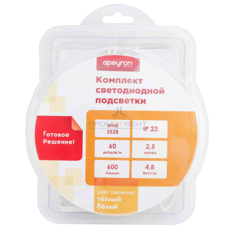 10-08 Комплект светодиодной ленты 12В с аксессуарами (блок, коннектор), smd 3528, 60 д/м, IP20, 2,5м, теплый белый – поставка оптом и в розницу от компании «ПромЭлВент». Цены от производителя: доставка по Сызрани и всей России. Скидки на объем!